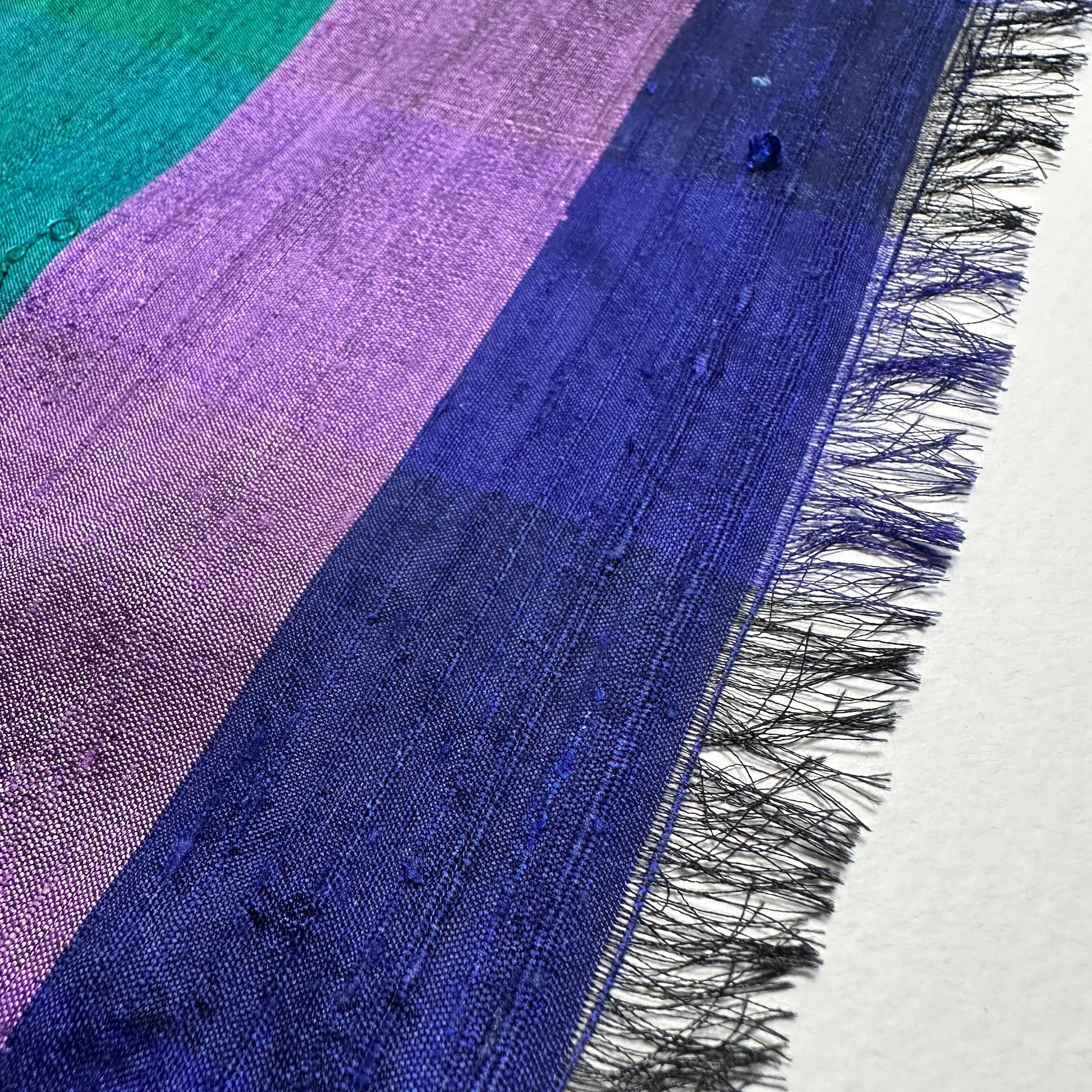 Checked handloom wide stripe in emerald, purple and cobalt (not as vibrant as its powerloom counterpart).