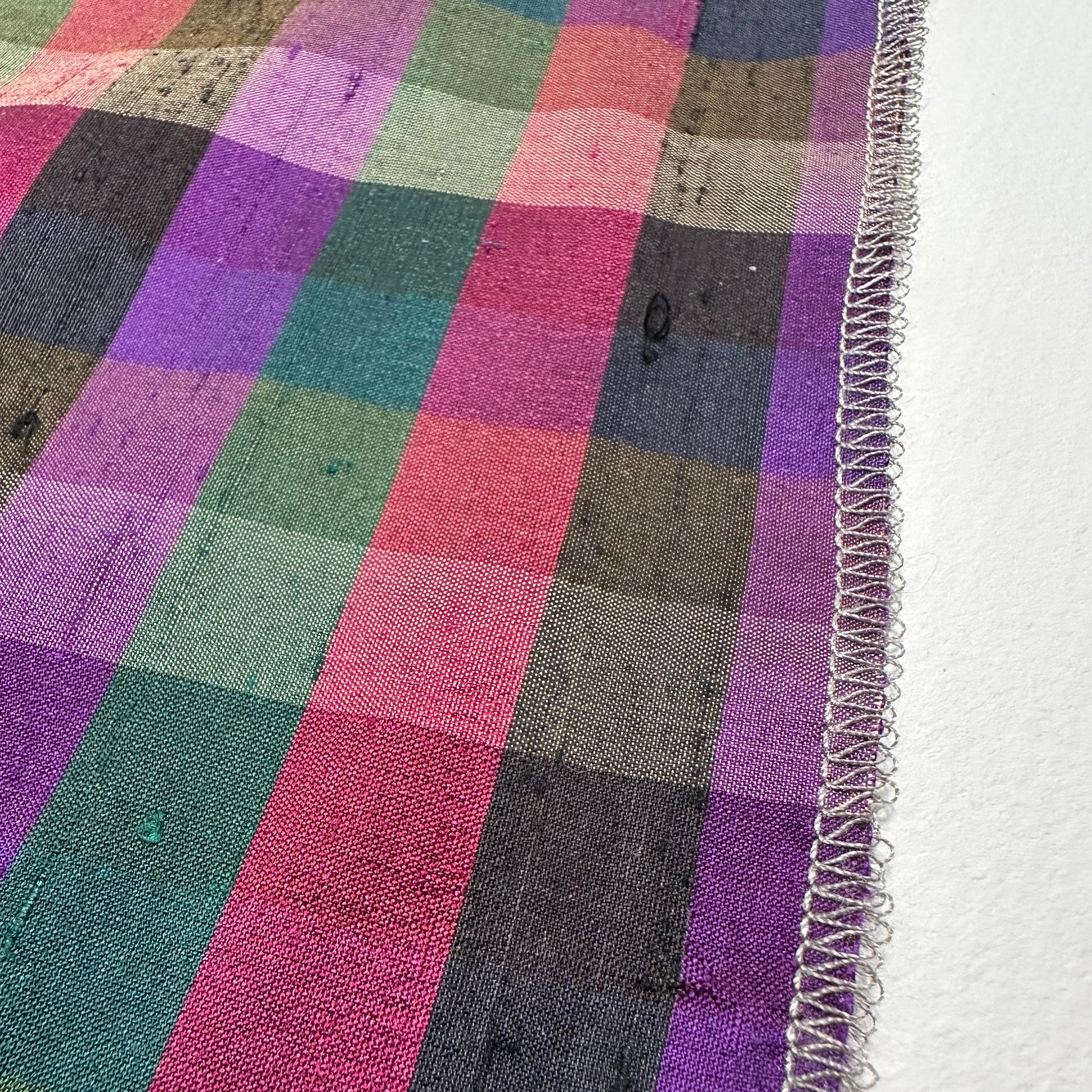 Checked powerloom has green,purple,brown and red checks.it can be matched with many plain colors.