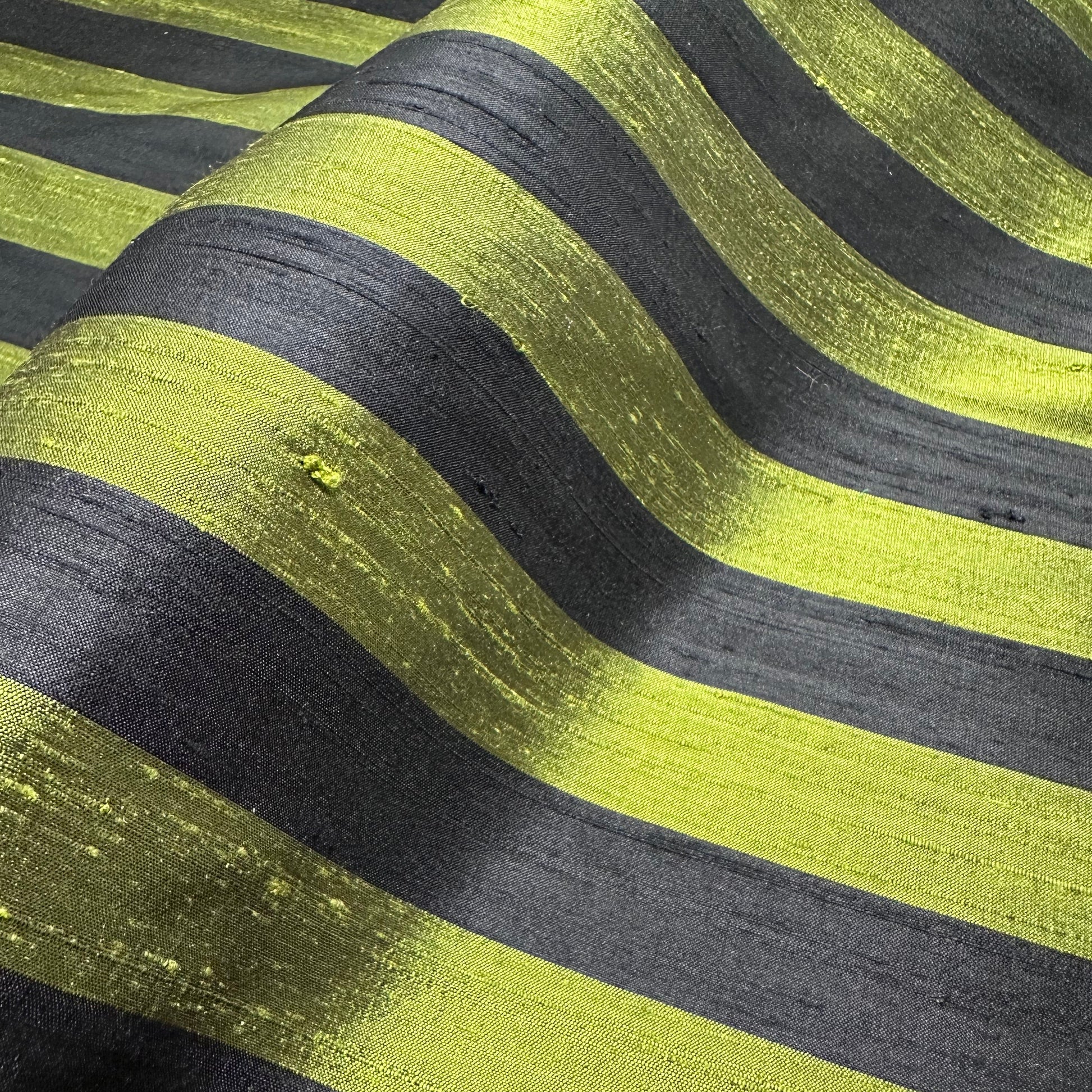 Olive Stripe is a warm green and black striped silk.