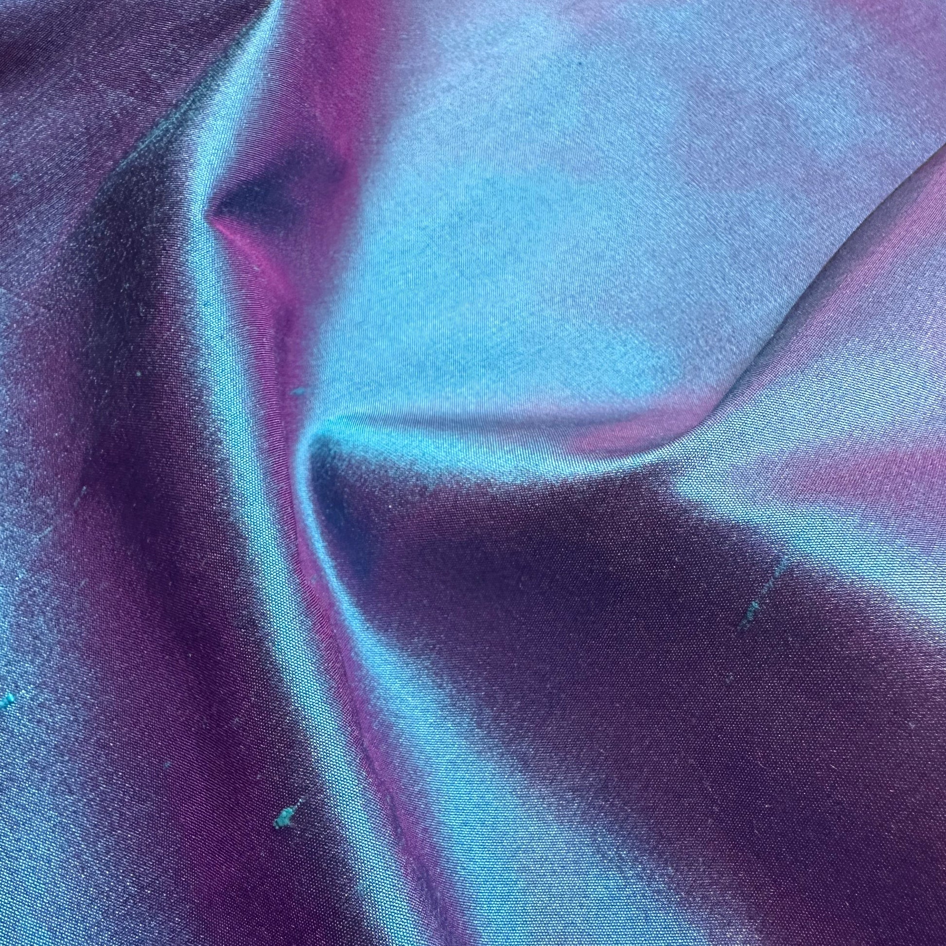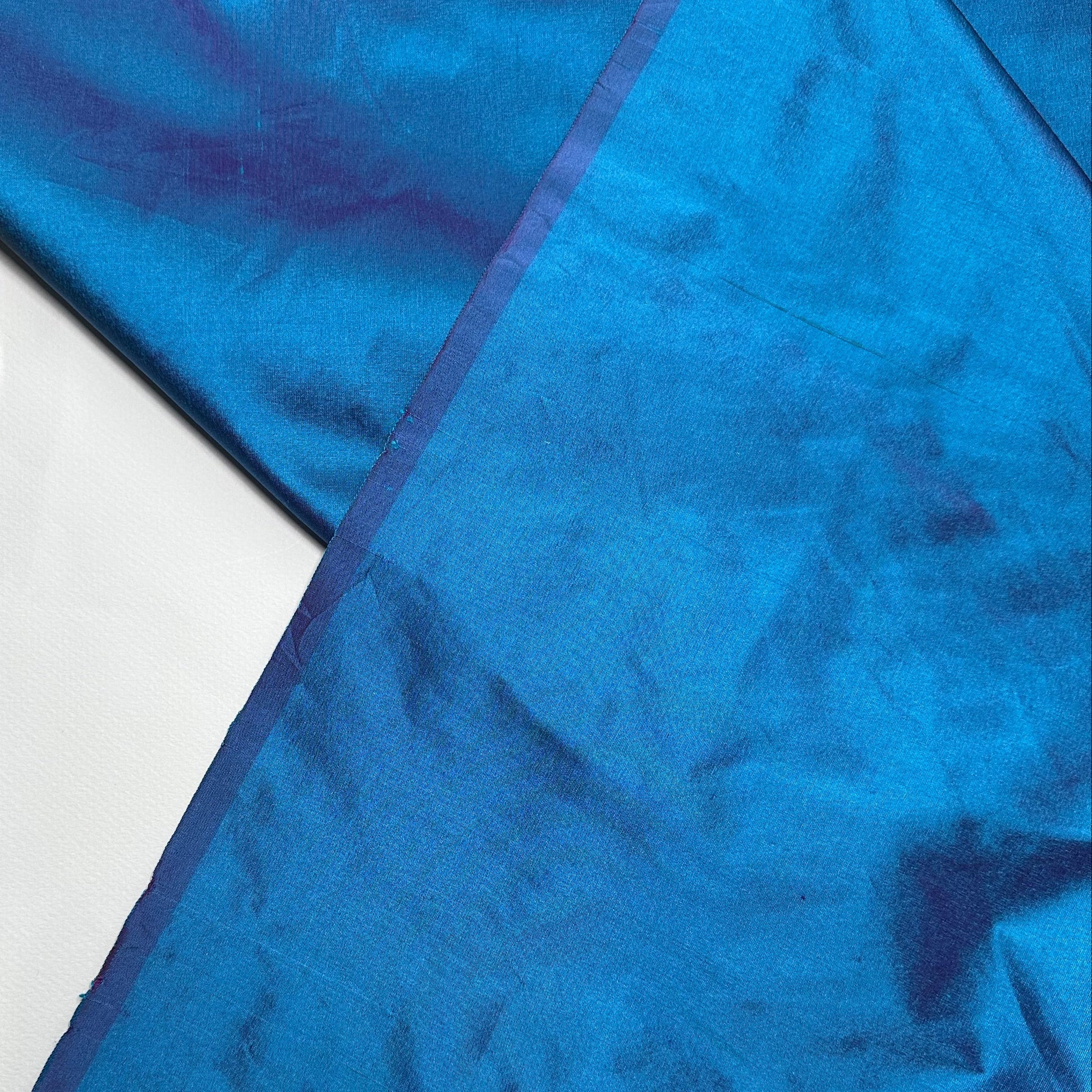 Paua is a bright turquoise blue silk shot with pink.